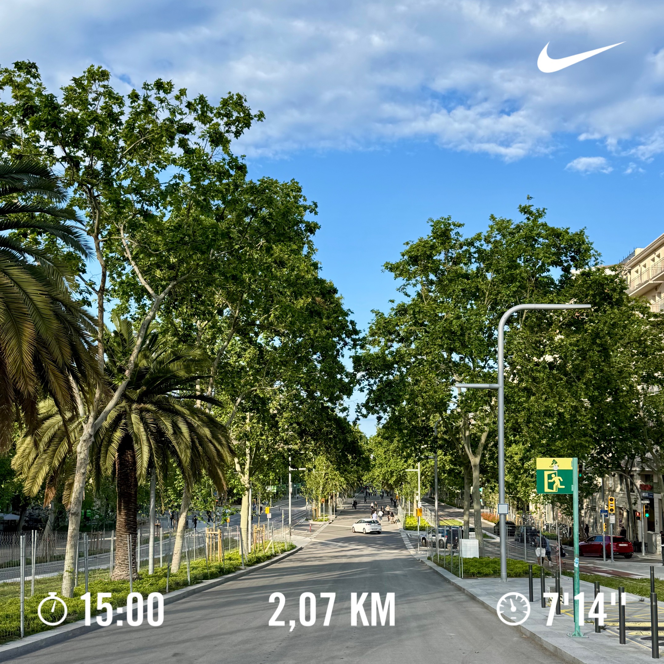 With only 6 hours of sleep last night due to an early flight to Barcelona this morning, my body didn’t recover well after yesterday’s 12,8-kilometer long run. So for today, I only completed a 15:00 minute recovery run on the famous Avinguda Diagonal. I trained intending to keep my average heart rate below 130 bpm, which I successfully achieved.