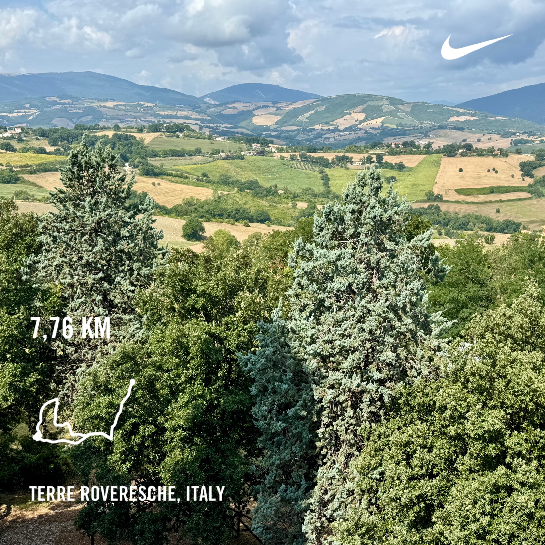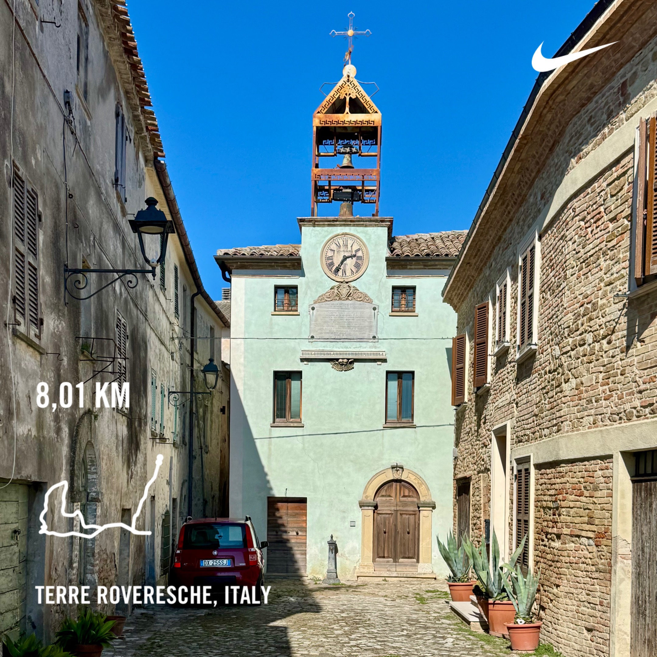 This 8-kilometer recovery run in the Marche, Italy, was fun and challenging. I initially wanted to go out for a 10-kilometer run, but I decided to shorten it because of the increased intensity added by the 222 meters of elevation covered during this distance. This is something my body isn’t used to at all.